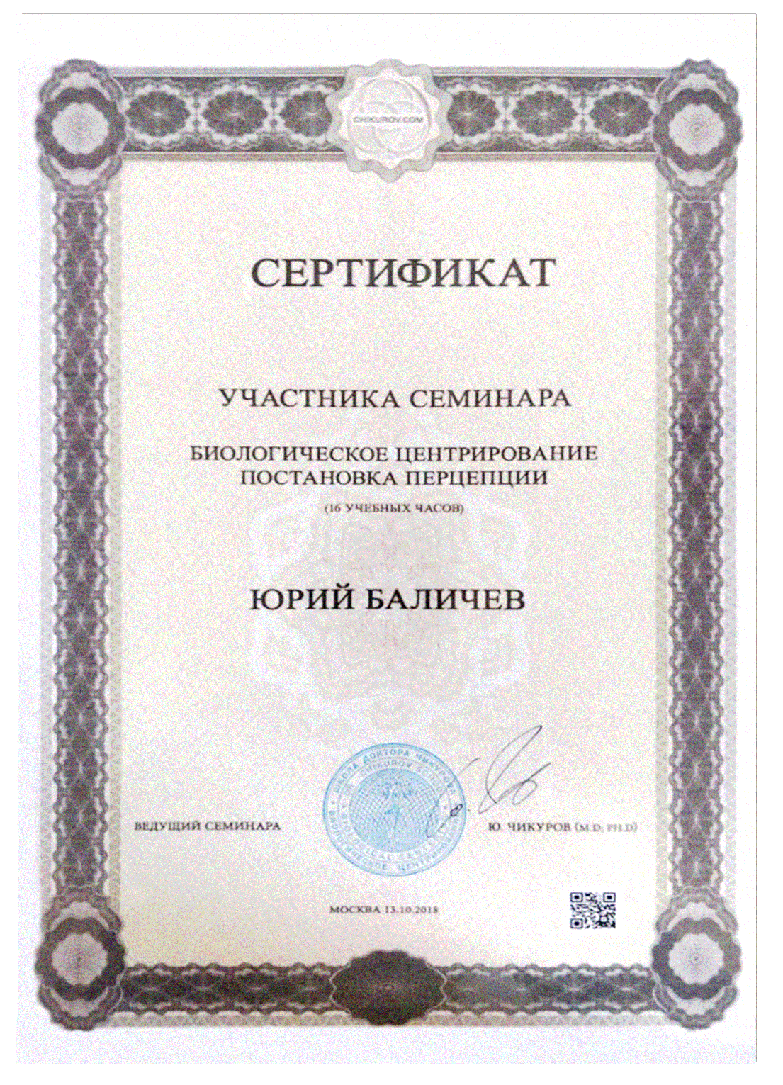 Юрий Баличев работает в сфере оздоровления с 2015 года. Специалист регулярно повышает свою квалификацию и улучшает навыки.